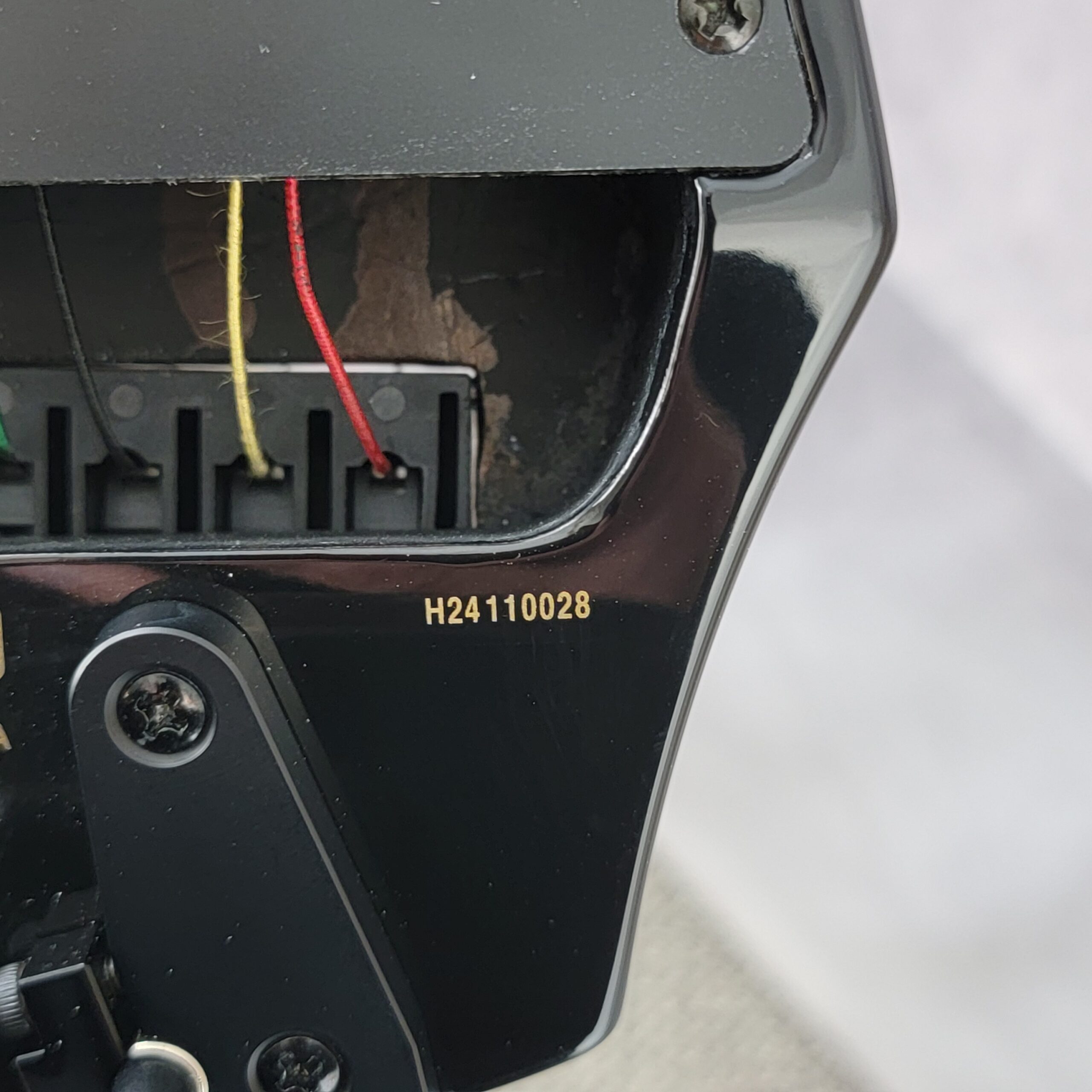 Bridge: Black-dyed maple, height adjustable via screws on back of body.