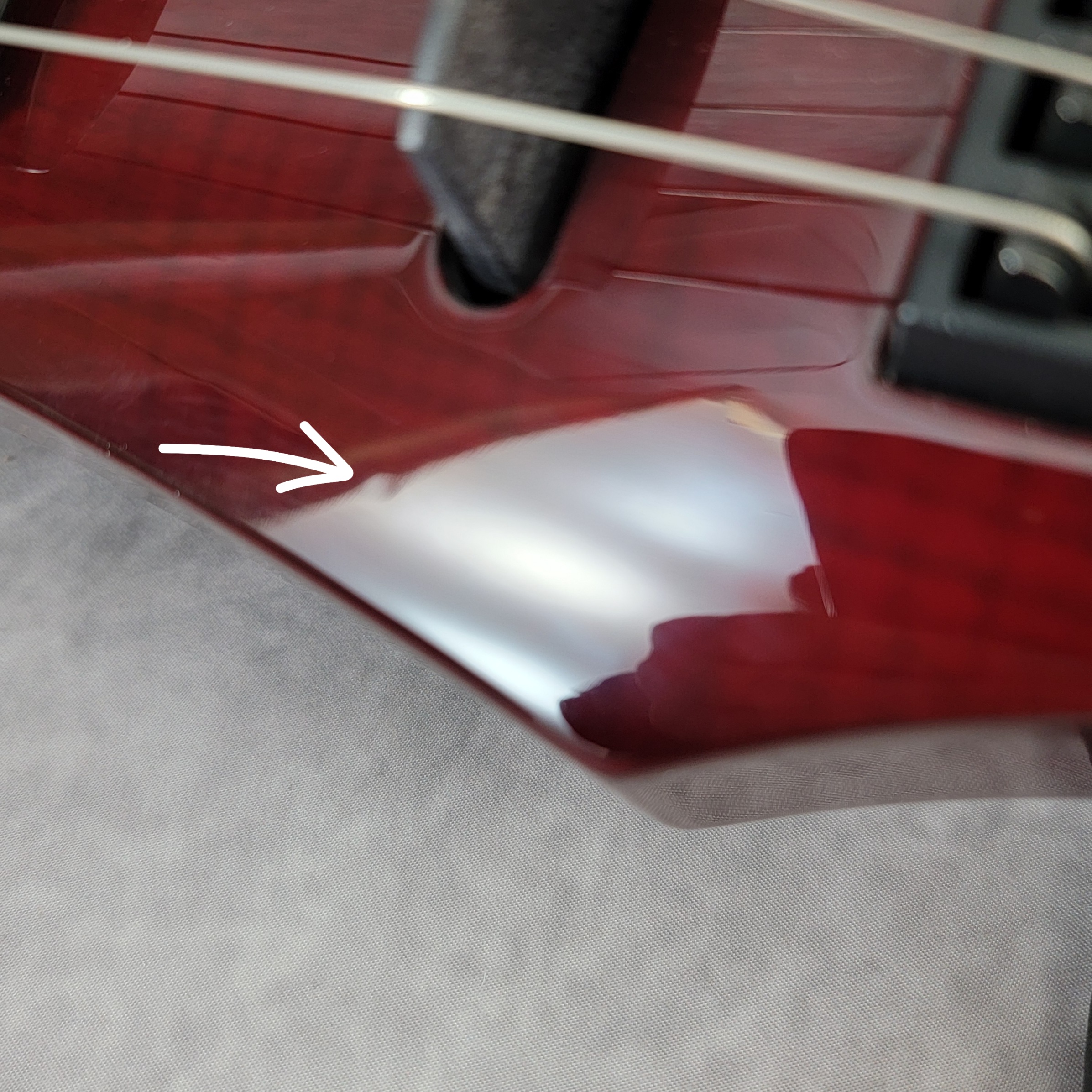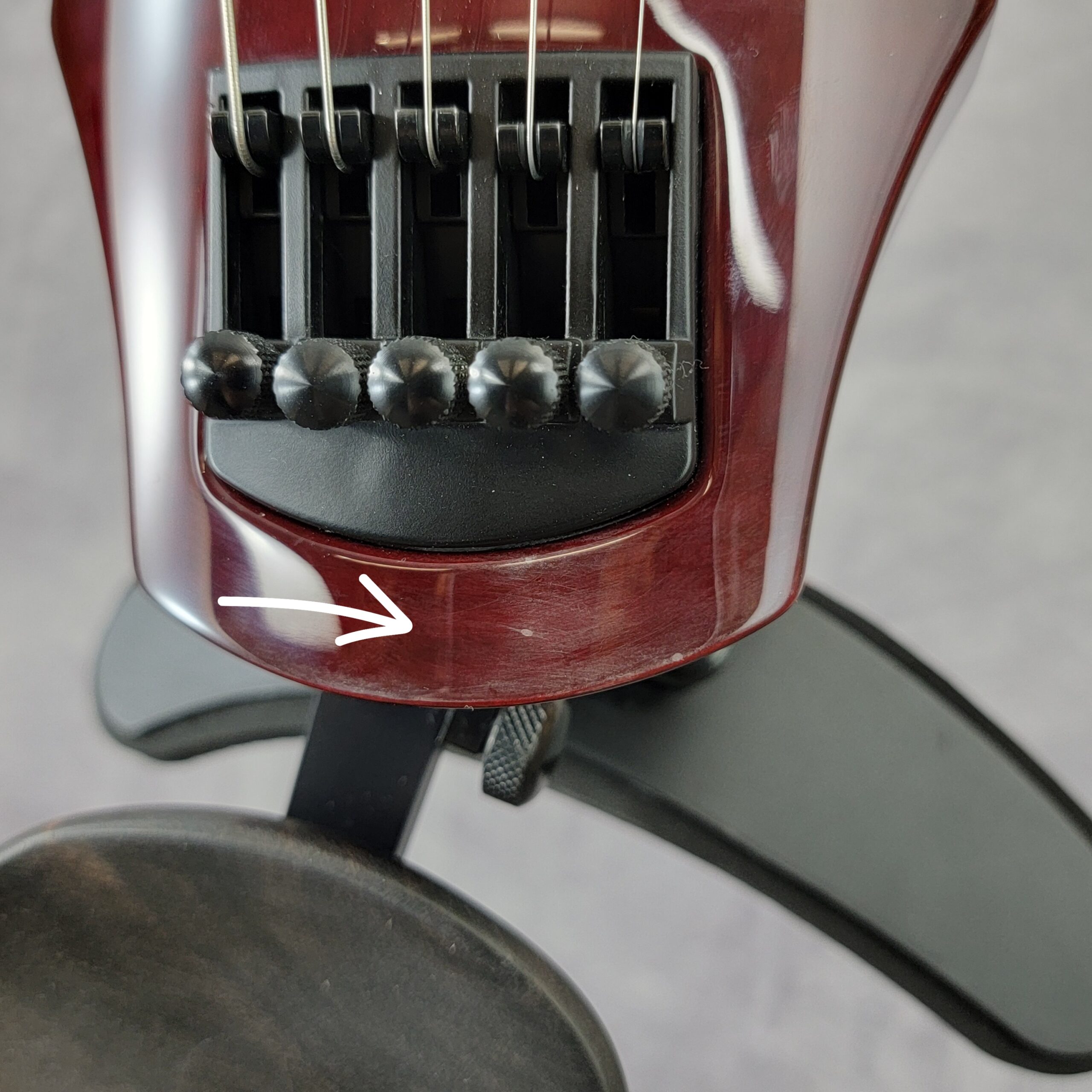 Body Reference Bout: Black-dyed maple bout on treble side provides standard violin reference. Easily removable for unrestricted neck access.