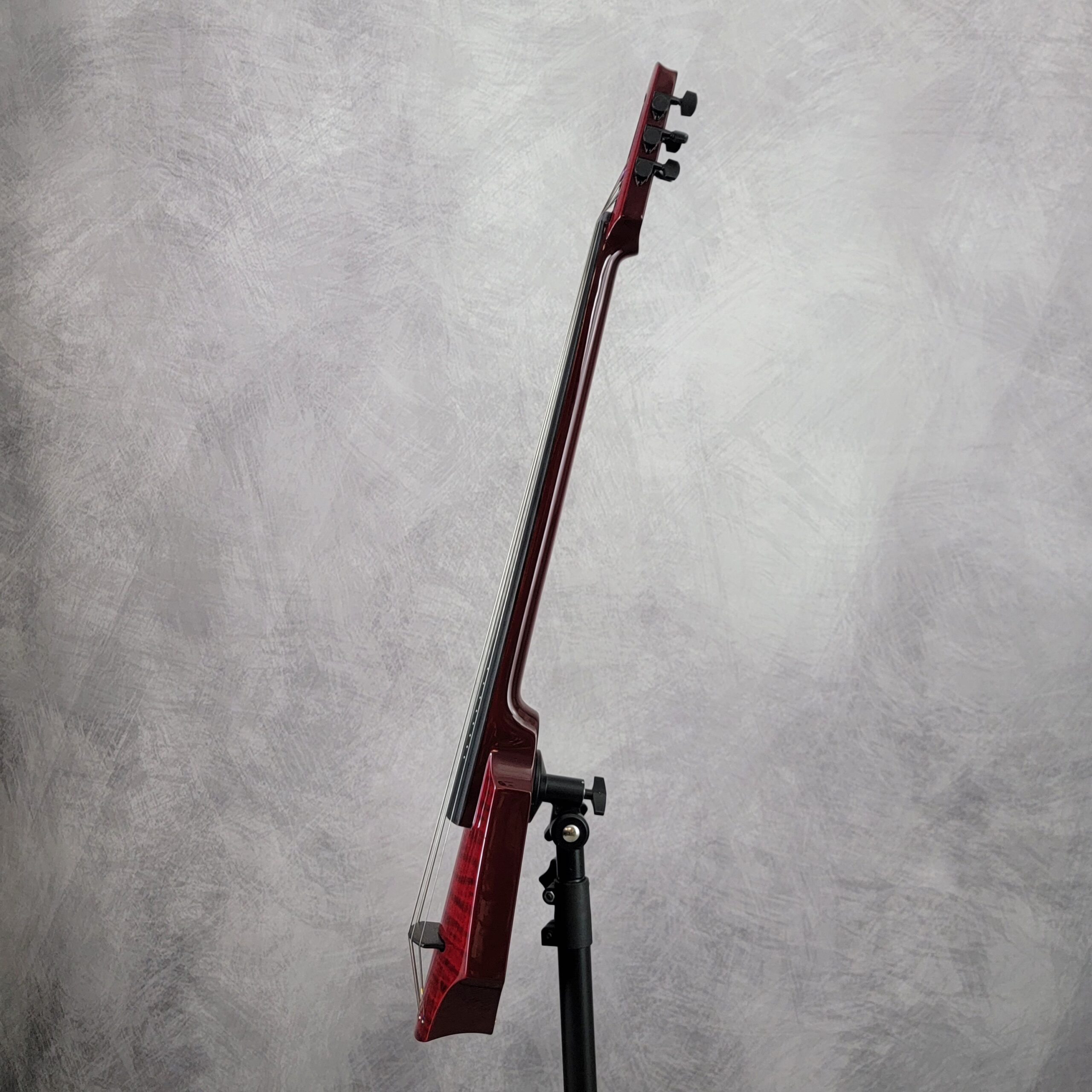 The body design allows effortless access to the full range of the fingerboard, and unparalleled freedom of movement on stage. The special asymmetrical fingerboard relief, a hallmark of all NS bowed electrics, provides extraordinary ease of playability from the lowest to the highest positions. To suit individual player preferences, the string heights can be modified via remarkably simple bridge height adjustment, and the fingerboard relief can be modified using the readily accessible two-way truss rod.