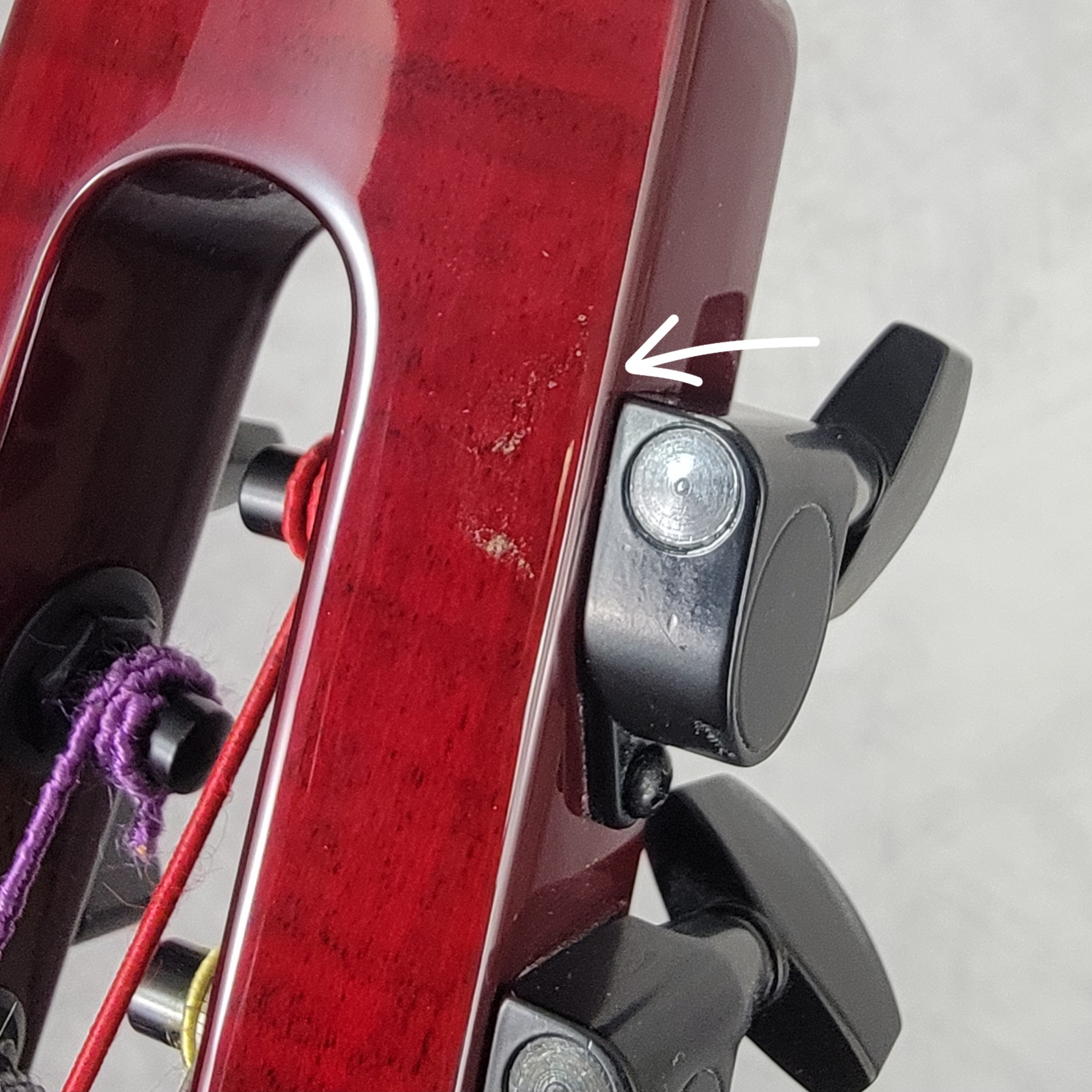 Tuning Hardware: Fully encased worm gear tuners, black finish.